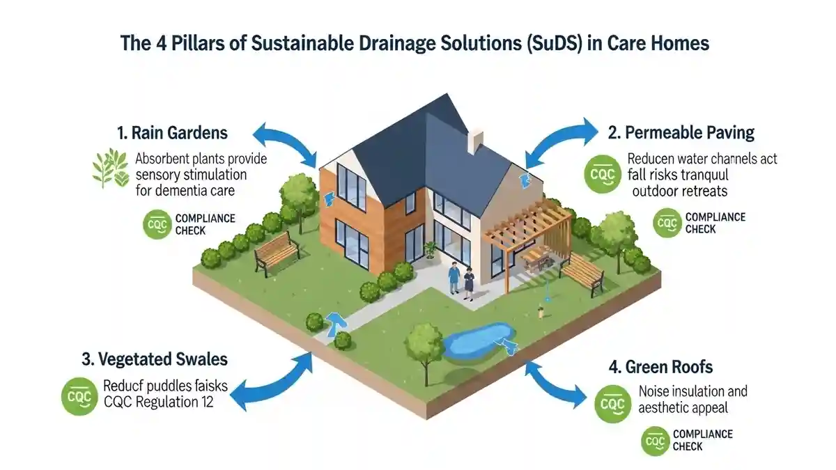The future of sustainable drainage solutions CQC care home design is the integration of SuDS (Sustainable Drainage Systems). In Harwich, Policy EN18 of the Local Plan encourages SuDS to manage surface water runoff, which often plagues the surrounding area.